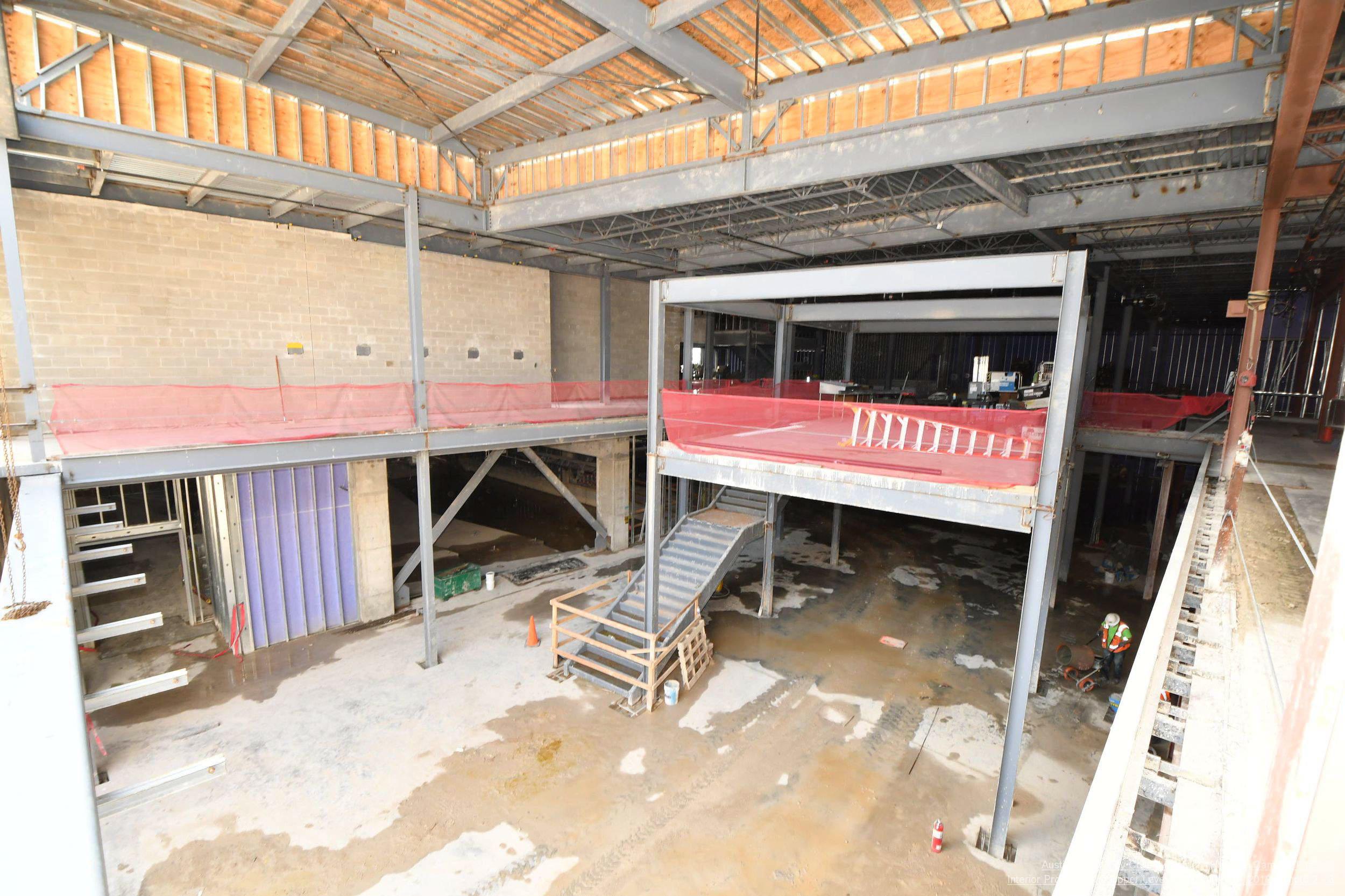 Underground utility trenching, chilled water piping, and storm pipe installation are ongoing, as are mechanical/electrical/plumbing overhead and in-wall installation, canopy work, and overhead fire protection.