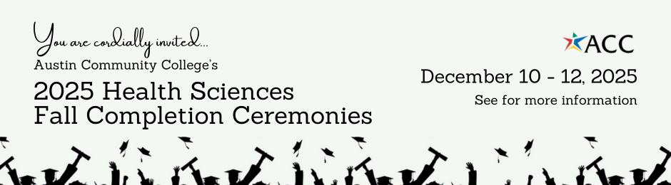 We are delighted to extend a warm invitation to you for our Austin Community College’s Health Sciences Completion Ceremonies, where we will celebrate the achievements of our graduating students.