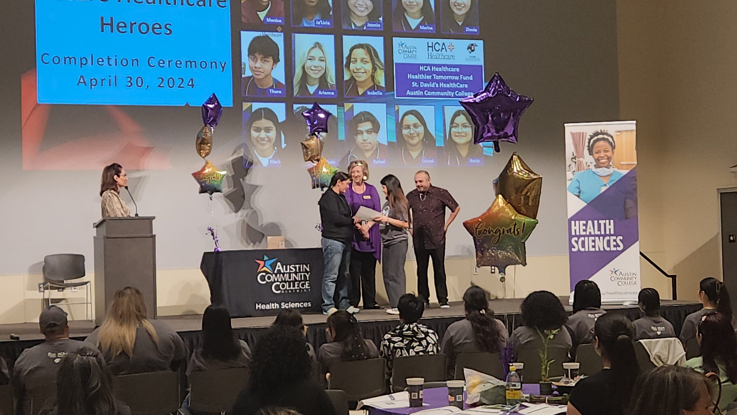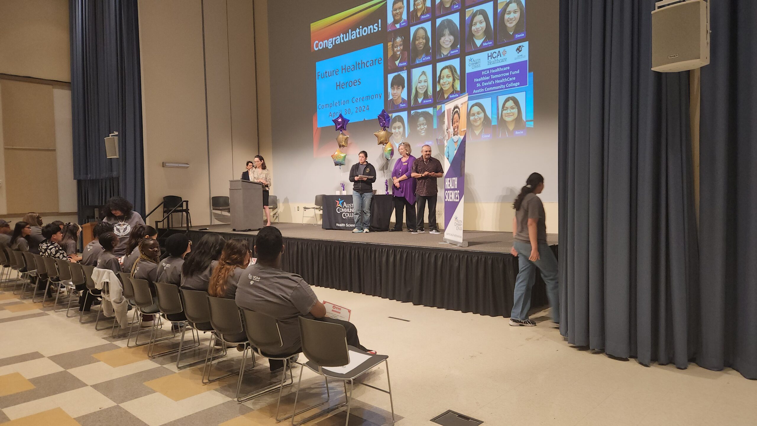 The ceremony was part of the Future Healthcare Heroes grant initiative, a partnership between ACC’s Health Sciences Division, Eastside ECHS, HCA Healthcare—Healthier Tomorrow Fund, and St. David’s HealthCare.