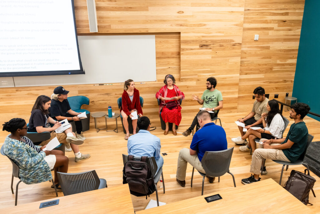 Participants engaged in lively, thoughtful conversations on the question “What is an American?” Small-group discussions, led by ACC students and faculty, drew from U.S. foundational documents and voices such as Frederick Douglass, Barbara Jordan, and Gloria Anzaldúa.