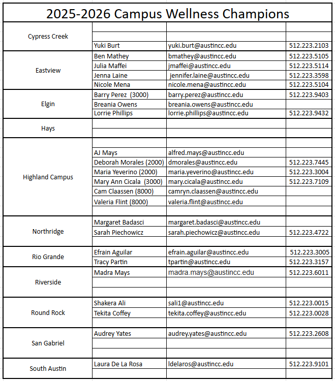 Interested in becoming a Wellness Champion for your campus? Contact Mauri Winters at [email protected].