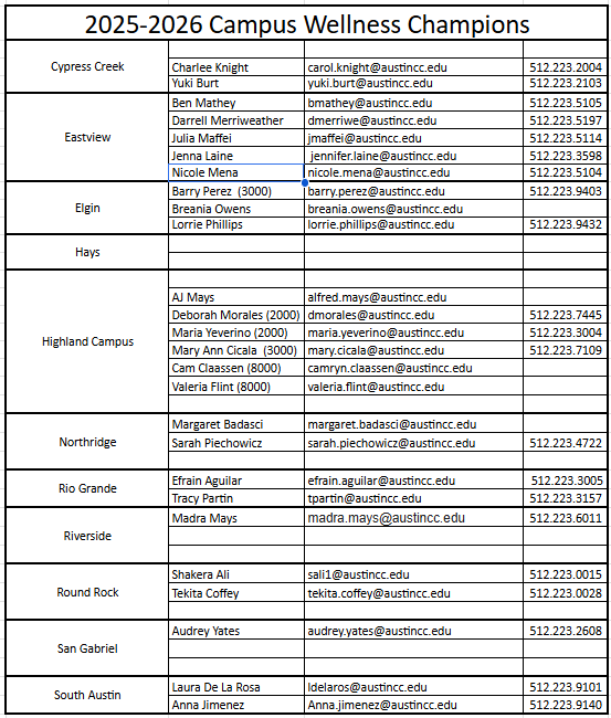 Interested in becoming a Wellness Champion for your campus? Contact Mauri Winters at [email protected].